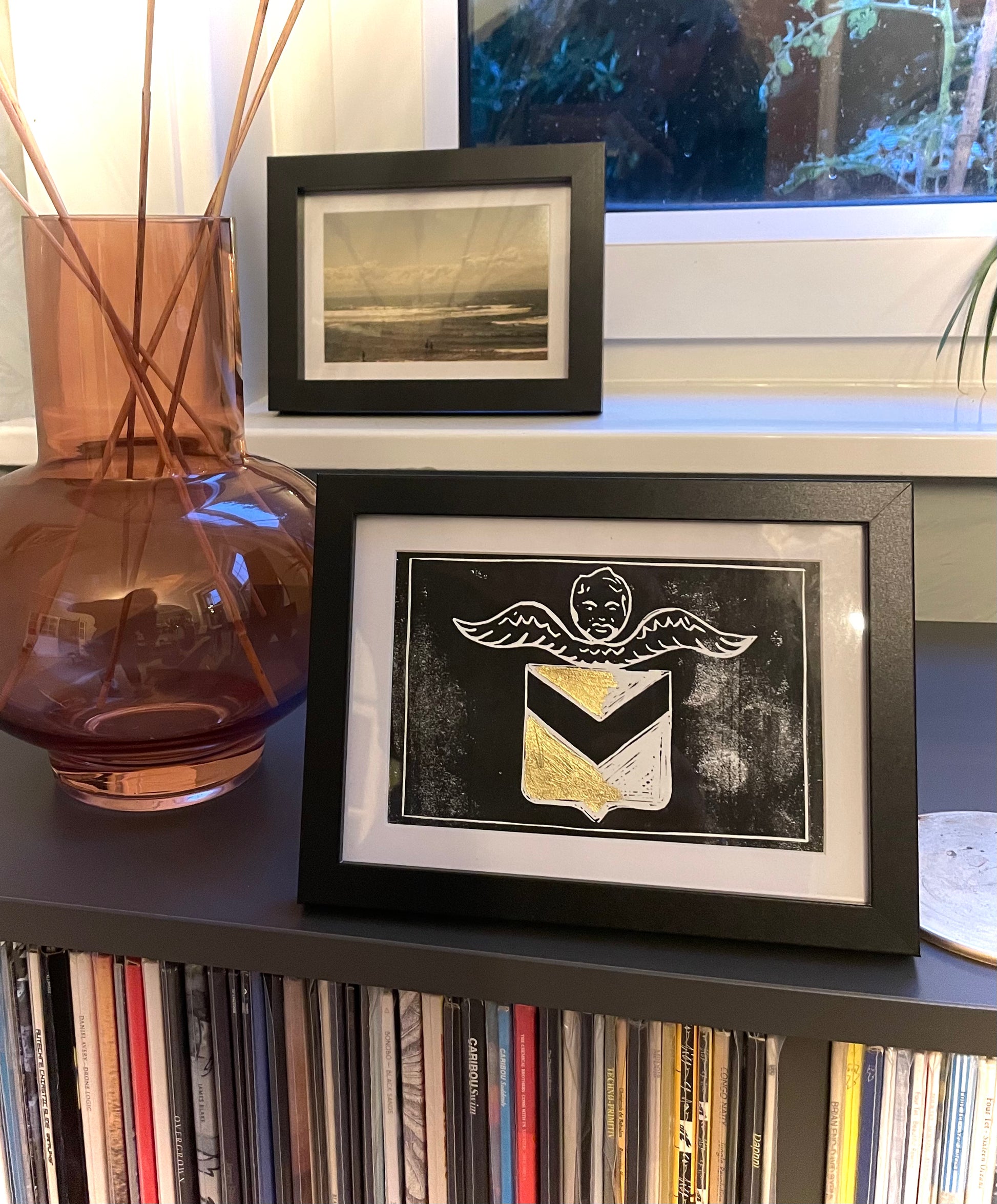 Add a touch of Newport charm and elegance to your space with this exclusive, hand-pulled Lino print of the Newport Cherub. Each print is one-of-a-kind, celebrating the natural variations of traditional Lino printing. A number of unique prints are available, some feature exquisite gold leaf detailing, while others showcase stunning bronze or amber ink accents. Each piece is unique. If you have a preference on the specific style based upon the pictures in the listing then please just say!